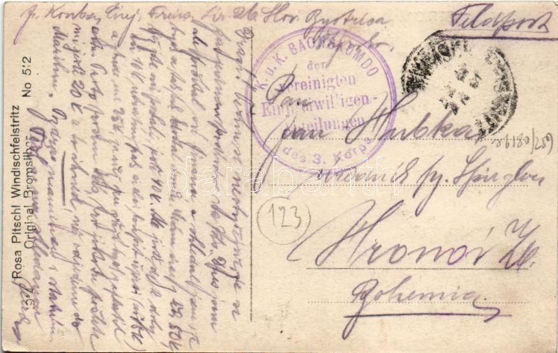 Slovenska Bistrica, Windisch-Feistritz; general view with castle. Rosa Pitschl Original Bromsilber + "K.u.K. BAONSKOMDO der vereinigten Einjfreiwilligen-Abteilungen des 3. Korps" (fl)