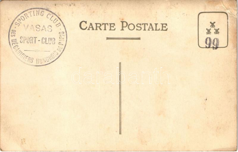 1932-1933 S.C.M. Hongrois de Paris Vasas. Champion 1932-1933. / a VASAS SE futball játékosai Párizsban, focisták, csoportkép / football players of VASAS SC in Paris. photo + So. Stpl (EB)