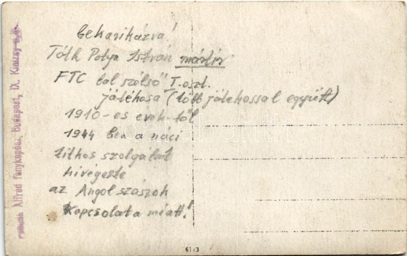 Az FTC Ferencváros játékosai, köztük Tóth Potya István (1891-1945). Po... https://www.darabanth.com/de/45-Gross-Auktion/45.1/Ansichtskarten/Sport~18850/Az-FTC-Ferencvaros-jatekosai-koztuk-Toth-Potya-Istvan-1891-1945-Pobuda-Alfred-fenykepC3~II3454632