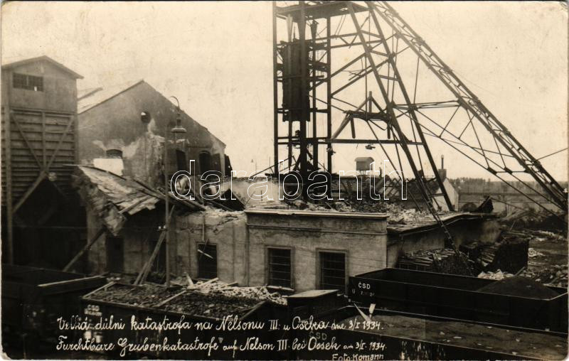 Osek, Ossek; Velká dulni katastofa na Nelsonu III. u Oseka dne 3/I. 1934 / Furchtbare Grubenkatastrofe auf Nelson III bei Ossek am 3/I. 1934. / terrible mine disaster, catastrophy. Foto Komann photo (EK)