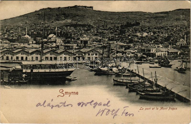 Izmir, Smyrne; Le port et le Mont Pagus / ships (EB) https://www.darabanth.com/de/45-Gross-Auktion/45.1/Ansichtskarten/Turkei~18820/Izmir-Smyrne-Le-port-et-le-Mont-Pagus-ships-EB~II3423186