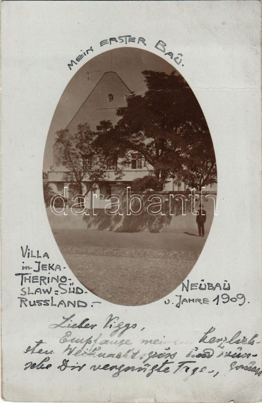1910 Dnipro, Dnipropetrovsk, Ekaterinoslav, Yekaterinoslav; Villa in Jekatherinoslaw (Süd-Russland) "Mein erster Bau" Neubau v. Jahre 1909. / villa. photo (fa)
