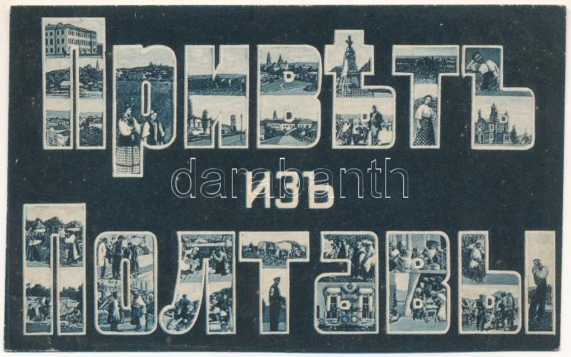 Poltava, multi-view postcard (wet damage) https://www.darabanth.com/de/45-Gross-Auktion/45.1/Ansichtskarten/Ukraine~18821/Poltava-multi-view-postcard-wet-damage~II3456092