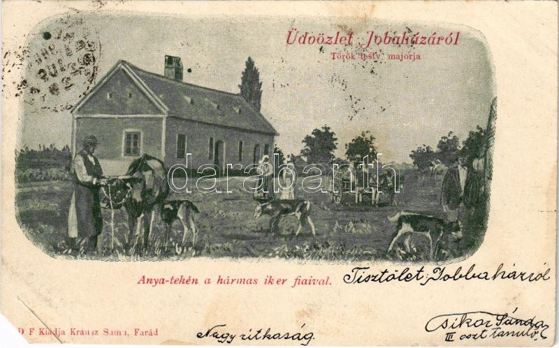 1900 Jobaháza, anyatehén a hármas iker fiaival. Krausz Samu kiadása (F... https://www.darabanth.com/de/45-Gross-Auktion/45.1/Ansichtskarten/Ungarn~18763/1900-Jobahaza-anyatehen-a-harmas-iker-fiaival-Krausz-Samu-kiadasa-Farad-b~II3437931