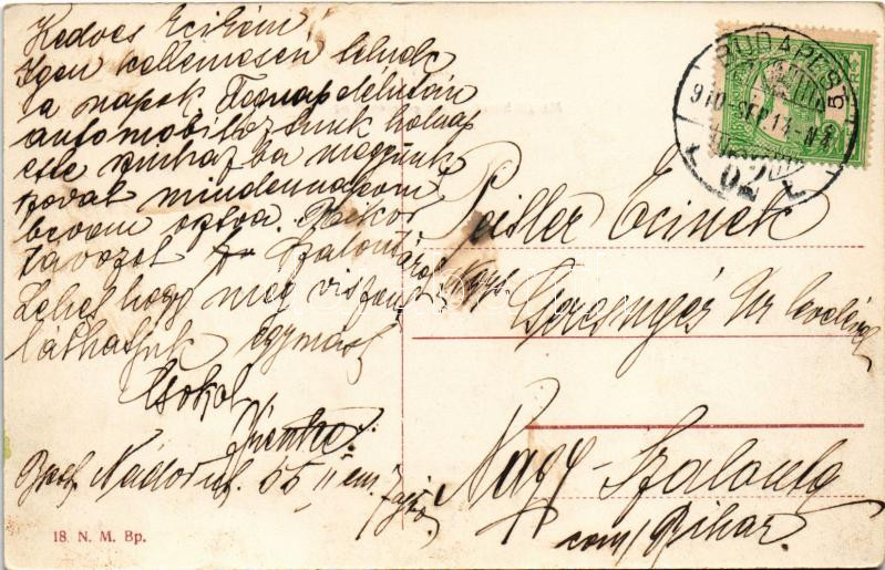 Beschreibung: 1910 Budapest II. Margit körút, Margit Park kávéház, Vörösvári úti villamos, üzletek