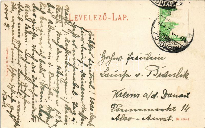 Beschreibung: 1911 Miskolc, Pannonia szálloda, Weissberg üzlete, Dr. Szel Miksa fogorvos rendelője, gyógyszertár. Ferenczi B. kiadása