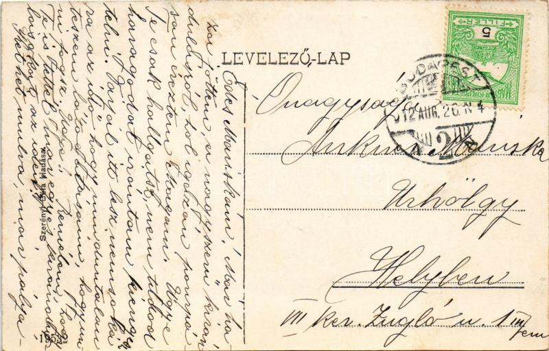 Beschreibung: 1912 Budapest XII. Svábhegy, fogaskerekű vasút megállóhelye vonattal, vasútállomás. Szerényi Béla kiadása (fl)