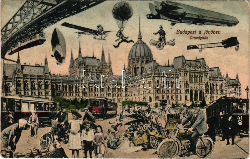 1914 Budapest V. Parlament, Országház a jövőben montázs. L. és P. 2646... https://www.darabanth.com/de/45-Gross-Auktion/45.1/Ansichtskarten/Ungarn~18763/1914-Budapest-V-Parlament-Orszaghaz-a-jovoben-montazs-L-es-P-2646-in-the-future-montag~II3448747
