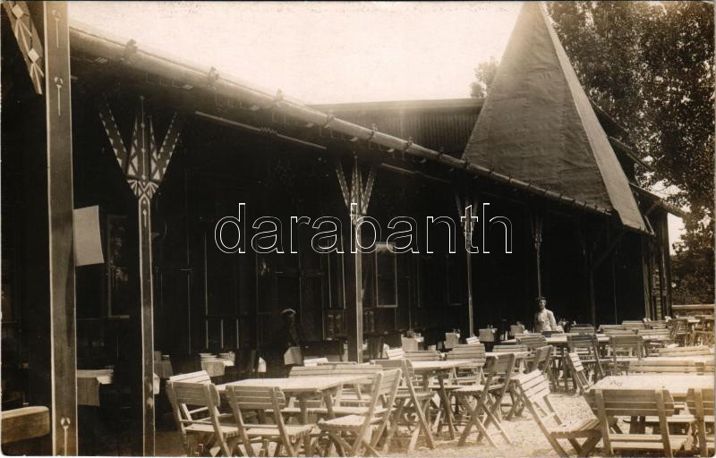Beschreibung: 1941 Balatonkenese, A Vonatkísérők Országos Otthona fürdő és üdülőtelepe, étterem terasza. Schäffer Ármin udvari fényképész felvétele. photo