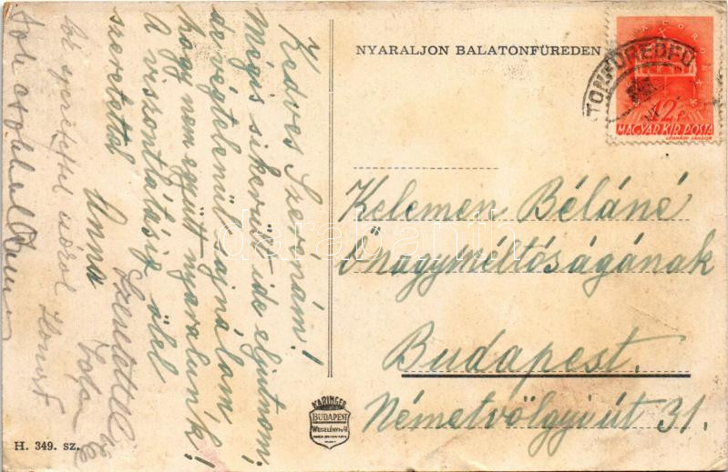 1942 Balatonfüred, Balaton Szövetség üdülőháza (ázott sarok / wet corn... https://www.darabanth.com/de/45-Gross-Auktion/45.1/Ansichtskarten/Ungarn~18763/1942-Balatonfured-Balaton-Szovetseg-udulohaza-azott-sarok-wet-corner~II3419671