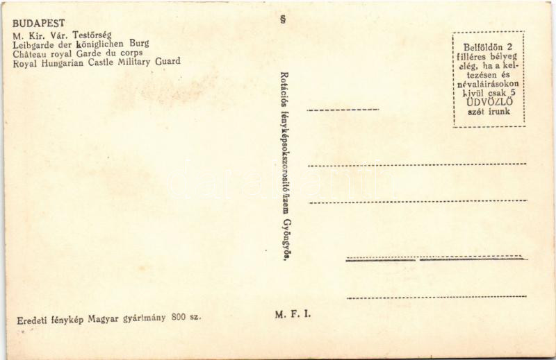 Budapest I. Királyi vár testőrség https://www.darabanth.com/de/45-Gross-Auktion/45.1/Ansichtskarten/Ungarn~18763/Budapest-I-Kiralyi-var-testorseg~II3440726
