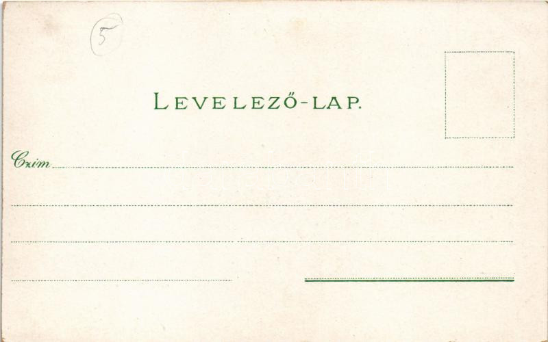 Budapest, Üdvözlet a Milleniumi (Ezredéves) Kiállításról, Közlekedésügyi és haditengerészeti csarnok, Történelmi főcsoport és Renaisance udvar. Carl Otto Hayd No. 418. Art Nouveau, floral, litho