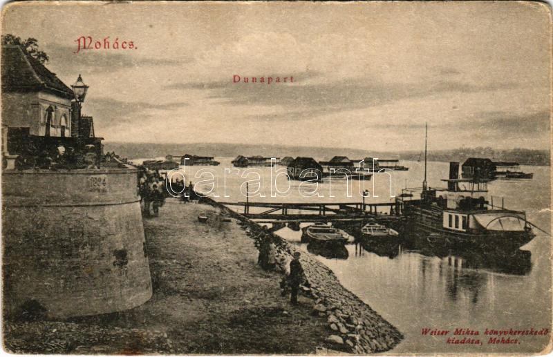 Mohács, Duna-part, hajómalom csoport a Dunán, hajóállomás. Weiser Miks... https://www.darabanth.com/de/45-Gross-Auktion/45.1/Ansichtskarten/Ungarn~18763/Mohacs-Duna-part-hajomalom-csoport-a-Dunan-hajoallomas-Weiser-Miksa-kiadasa-floating-~II3446339