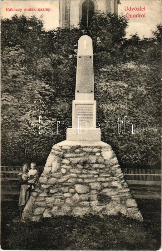 Beschreibung: Ónod, Rákóczi emlékoszlop. Oroszi és Thury kiadása (EK)