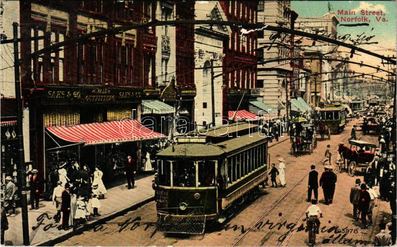 1912 Norfolk (Virginia), Main Street, Saks & Co., tram, shops ... https://www.darabanth.com/de/45-Gross-Auktion/45.1/Ansichtskarten/Vereinigte-Staaten-von-Amerika~18772/1912-Norfolk-Virginia-Main-Street-Saks-amp-Co-tram-shops-wet-corner~II3438397
