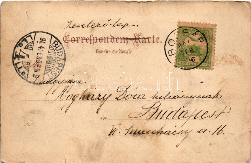 1904 Bocsár, Bocar; Görögkeleti (ortodox) templom, vasútállomás, gőzmozdony, vonat, Baich palotája, kastély / Orthodox church, railway station, locomotive, trian, castle (gyűrődések / creases)