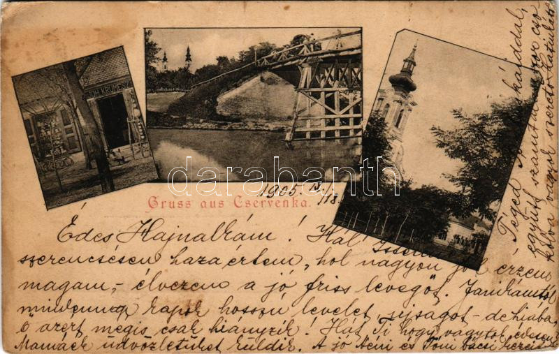 1905 Cservenka, Crvenka; Joh. Krumesz üzlete, Ferenc csatornai híd, te... https://www.darabanth.com/de/45-Gross-Auktion/45.1/Ansichtskarten/Vojvodina~18768/1905-Cservenka-Crvenka-Joh-Krumesz-uzlete-Ferenc-csatornai-hid-templom-shop-of-Krumesz-bri~II3447720