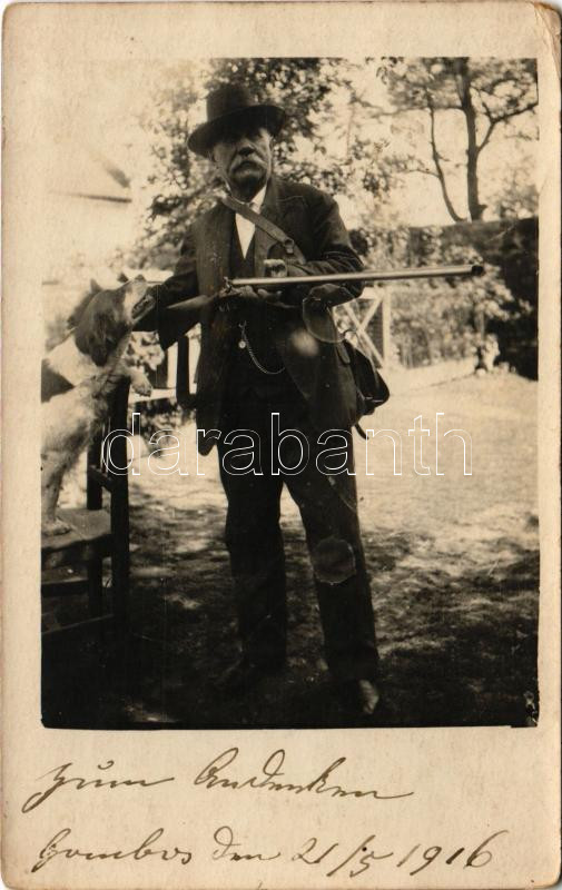 1916 Gombos, Bogojeva, Bogojevo; vadász puskával és kutyával / hunter ... https://www.darabanth.com/de/45-Gross-Auktion/45.1/Ansichtskarten/Vojvodina~18768/1916-Gombos-Bogojeva-Bogojevo-vadasz-puskaval-es-kutyaval-hunter-with-rifle-and-dog-photo~II3443131