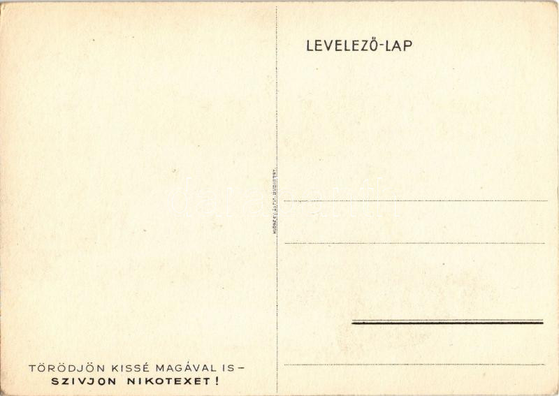 Látja Pista ezt szeretem... mert NIKOTEX. Törődjön kissé magával is - szívjon Nikotexet! Cigaretta reklám. Klösz Gy. és Fia / Hungarian cigarette advertisement art postcard s: Gebhardt (EK)
