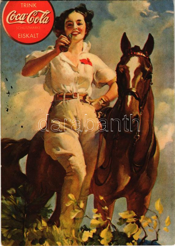 Trink Coca-Cola schutzmarke Eiskalt / Coca-Cola drink advertisement, l... https://www.darabanth.com/de/45-Gross-Auktion/45.1/Ansichtskarten/Werbungen~18848/Trink-Coca-Cola-schutzmarke-Eiskalt-Coca-Cola-drink-advertisement-lady-with-horse-fl~II3454534
