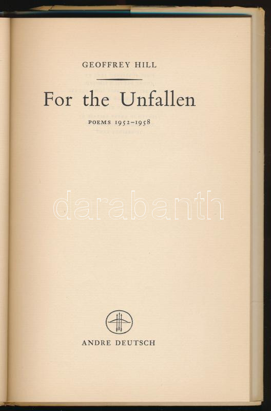 Hill, Geoffrey: For the Unfallen. Poems 1952-1958. DEDIKÁLT! 1959, And... https://www.darabanth.com/de/45-Gross-Auktion/45.1/Bucher/Bucher-Andere-Sprache~18527/Hill-Geoffrey-For-the-Unfallen-Poems-1952-1958-DEDIKALT-1959-Andre-Deutsch-Kiadoi-kartona~II3447365