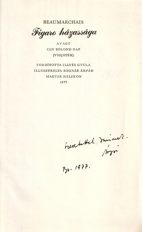 Beaumarchais, [Pierre-Augustin Caron de]: Figaro házassága avagy egy bolond nap. [A grafikus által dedikált példány.]