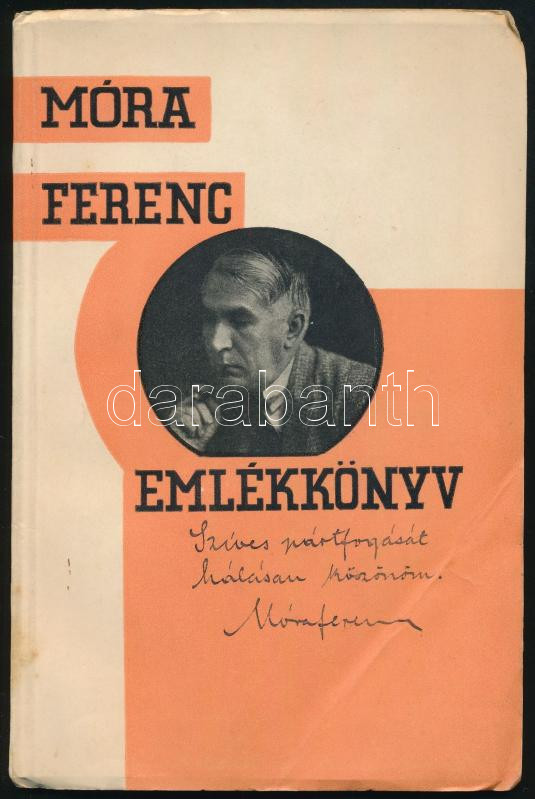 Emlékkönyv Móra Ferenc 30 éves irói jubileumára. Bp., 1932, Móra Ferenc Emlékkönyv Szerkesztősége. Fűzött, kiadói papírkötésben 64p. Móra Ferenc által dedikált példány!