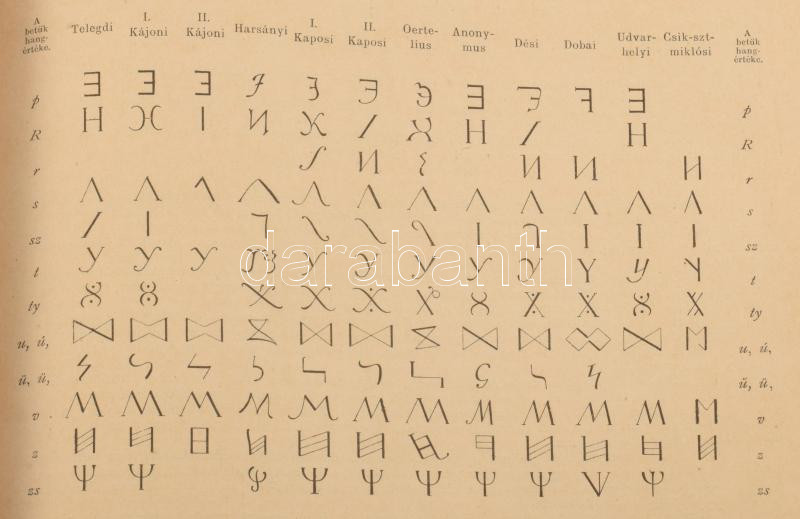 Fischer Károly Antal (1838-1926) magyar királyi vasúti hivatalnok, műkedvelő nyelvész, a hun-magyar rovásírás szakértője. Oldalszámozáson belül számos ábrával illusztrált szakmunkája a rovásíráson mellett a hun-magyar rokonság elméletét támogatja, ám munka fókuszában elsősorban az adatközlés, illetve a hun rovásírásos emlékek tanulmányozásának tudománytörténete áll. Korabeli félvászon kötésben
