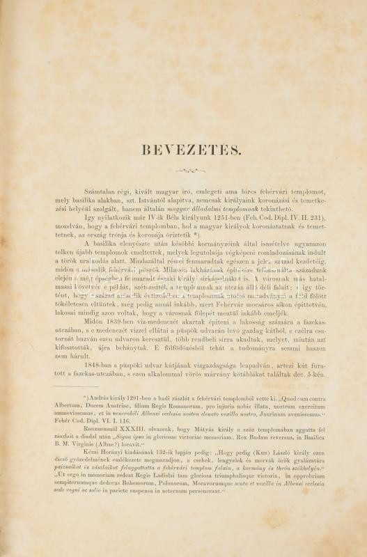 Henszlmann Imre: A székes-fehérvári ásatások eredménye. Pest, 1864, Heckenast Gusztáv, (Landerer és Heckenast-ny.), [6]+226 p.+9 t. Szövegközti fametszetű ábrákkal gazdagon illusztrált. Átkötött aranyozott modern félvászon-kötés, bekötött elülső papírborítóval, foltos lapokkal, a címlapon és az előzéklapon kis sérüléssel.