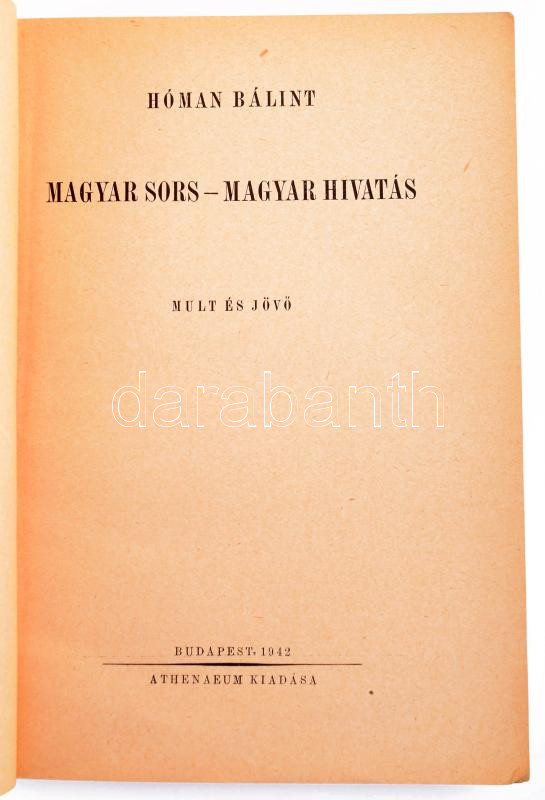 Hóman Bálint: Magyar sors - magyar hivatás. Múlt és jövő. Bp., 1942, A... https://www.darabanth.com/de/45-Gross-Auktion/45.1/Bucher/Bucher-Geschichte~18515/Homan-Balint-Magyar-sors-magyar-hivatas-Mult-es-jovo-Bp-1942-Athenaeum-307p-Kiadoi~II3440932