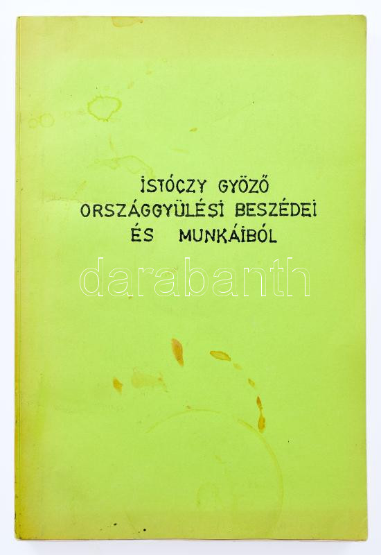 Istóczy Győző Nagy Iván: Istóczy Győző országgyűlési beszédei és munkáiból. Sydney, 1985. H.M. 220p. Kiadói papírkötésben , néhány lapon folttal. Emigráns kiadás az antiszemitizmus hazai előfutárától.