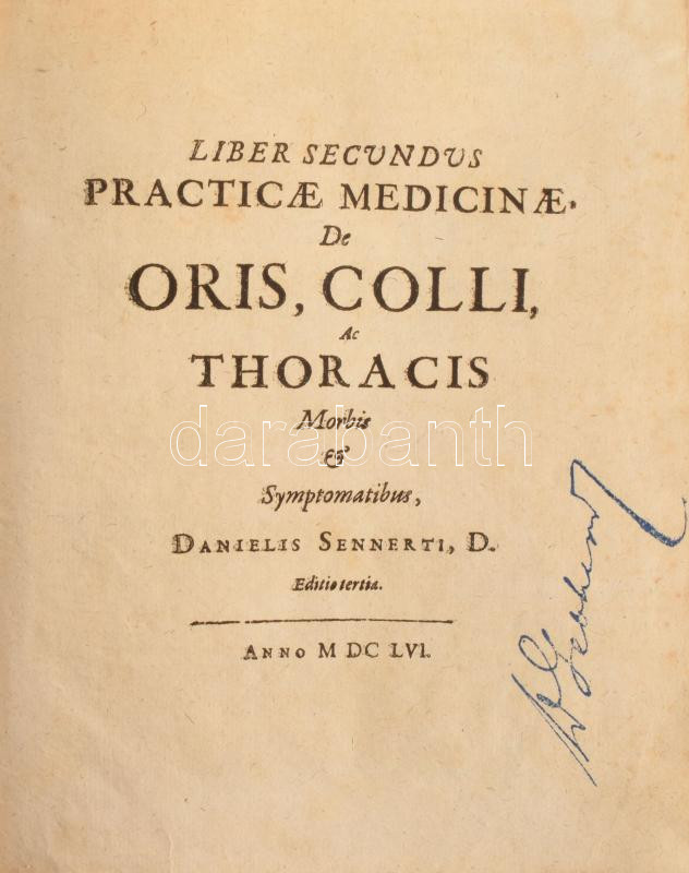 Liber Secundus [II.]: De Athritide Tractatus. Practicae Medicinae De Oris, Colli ac Thoacis Morbis & Symptomatibus, Danielis Sennerti, D. Editio Tertia. Anno MDCLVI [1656.];