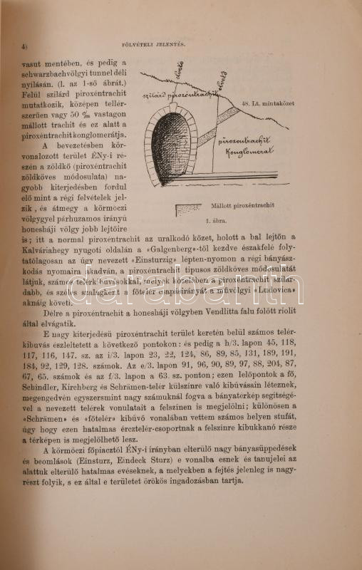 Gesell Sándor: 8. Jelentés a Selmeczbána és környékén 1882. és 1883-ban eszközölt részletes bányageológiai felvételekről. Különlenyomat a Földtani Közlöny XVI. kötetéből. 1884. évf. 4-8 füzet. Bp., 1884, Magyarhoni Földtani Társulat,(Franklin-ny.), 2+[273]-283 p.;