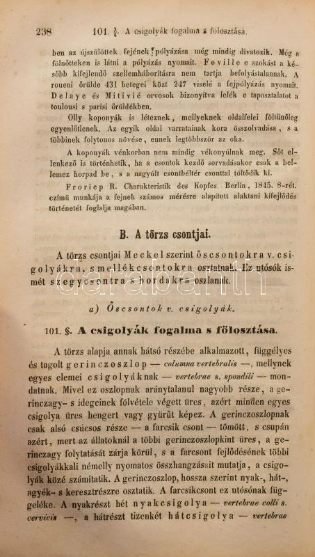 Hyrtl József: Az emberboncztan tankönyve tekintettel az élettani indokolásra s a gyakorlati alkalmazásra. Írta németül Dr. - - , magyarítá Dr. Foltényi János, pesti gyakorló orvos és Dr. Rhédey Antal, élettani segéd segéllyével. Boncztani szótárral. Buda, 1849, Kir. Egyetemi Nyomda, 2+XX+2+980+2 p. Átkötött egészvászon-kötés, kopott borítóval, a gerincen kis sérülésekkel, a gerincen hosszanti törésnyommal, ceruzás aláhúzásokkal, bejelölésekkel, és néhány bejegyzéssel, két lapon szakadással (791/792-793/794 p.), néhány lapon szamárfüllel, a 791. oldaltól a lapok sarkain kis hiánnyal, névbélyegzéssel a címlapon, valamint szecessziós magánkönyvtári címkével.