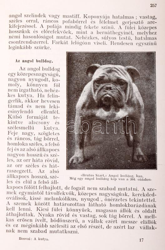 Ilosvai Lajos Károly: A kutya sportszerű tenyésztése, nevelése és idomítása. Részletes vezérfonal ebtenyésztők és ebkedvelők számára. 120 képpel. 371p. Bp., Athenaeum. Szerző által ALÁÍRT példány. Kiadói festett egészvászon kötés, gerincen kis sérüléssel, kötéstáblák sarkai kopottak, kissé kopottas állapotban.