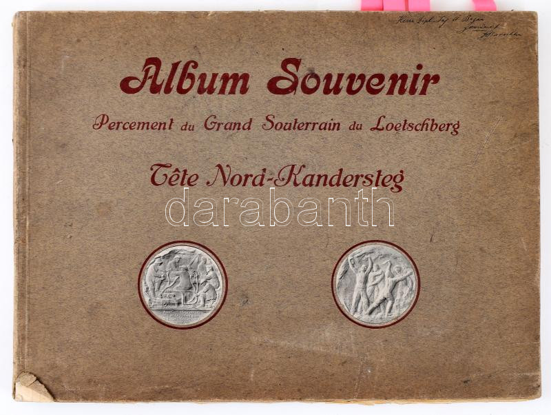 Album-Souvenir [du] Percement du Grand Souterrain du Loetschberg, T?te Nord-Kandersteg Published: Zürich, 1911. J. Meiner. 26 t (hártyapapírral elválasztott képes táblák) 2 tábla sarkán képet nem érő hiány. néhány hártyapapír gyűrött, egyébként jó állapotban 37x28 cm / (pictured panels separated by tissue paper) 2 panels have a missing corner that does not affect the picture. Some tissue paper is creased, otherwise in good condition 37x28 cm