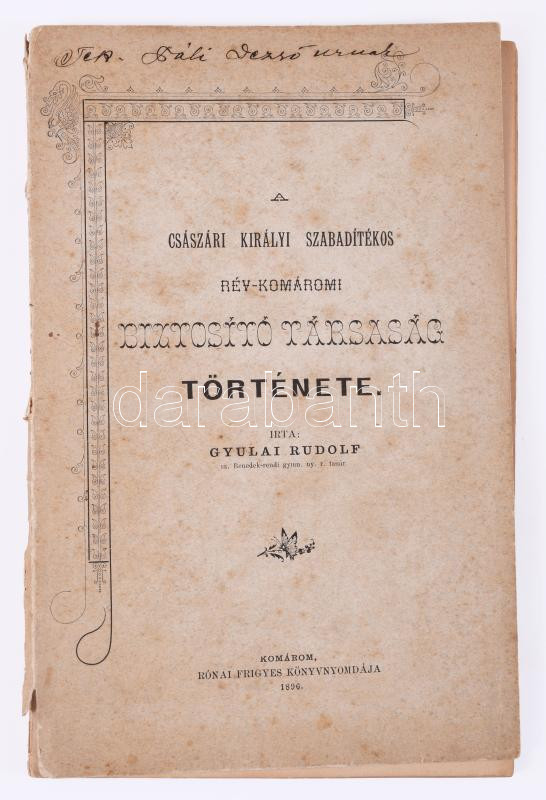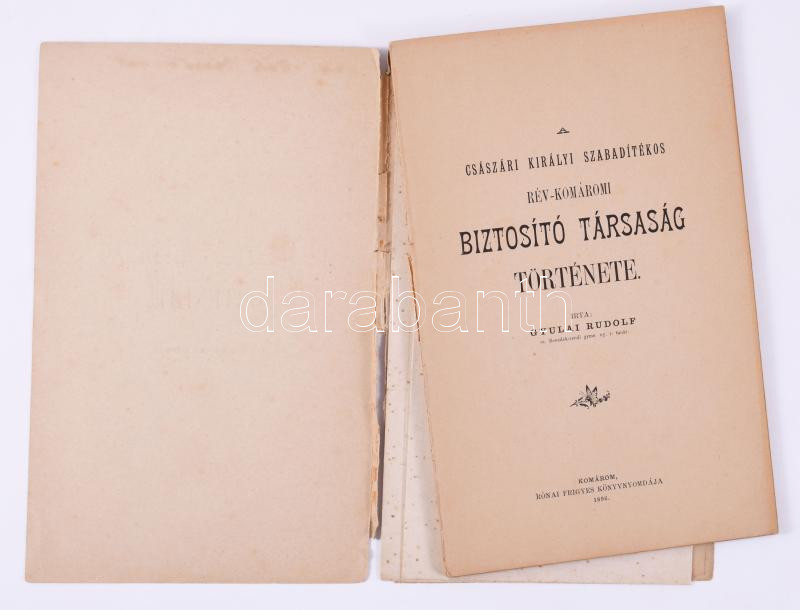 Gyulai Rudolf: A császári királyi szabadÃtékos rév-komáromi biztosÃtó ... https://www.darabanth.com/de/45-Gross-Auktion/45.1/Bucher/Bucher-Reise-und-Ortgeschichte~18979/Gyulai-Rudolf-A-csaszari-kiralyi-szabaditekos-rev-komaromi-biztosito-tarsasag-tortenet~II3421529