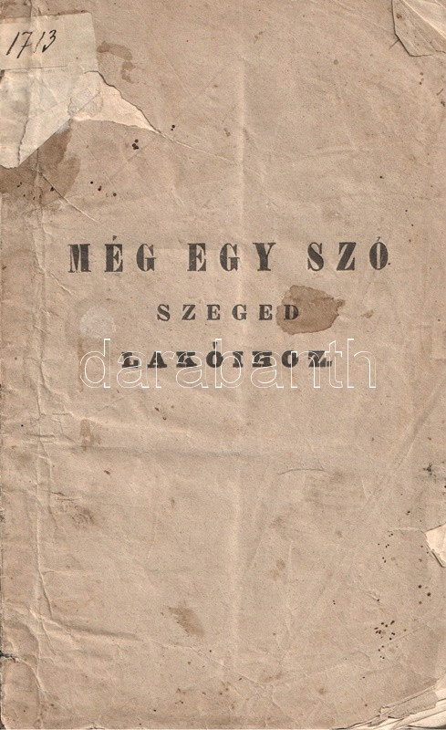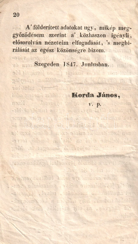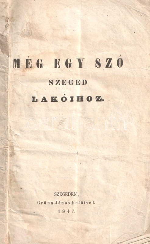 Szeged, 1847. Grünn János betüivel. 20 p. Egyetlen kiadás.