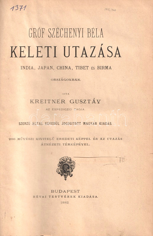 Gróf Széchenyi Béla keleti utazása India, Japan, China, Tibet és Birma országokban. 200 művészi kivitelű eredeti képpel és az utazás átnézeti térképével.