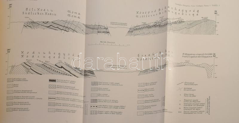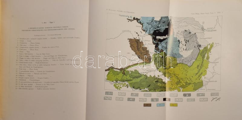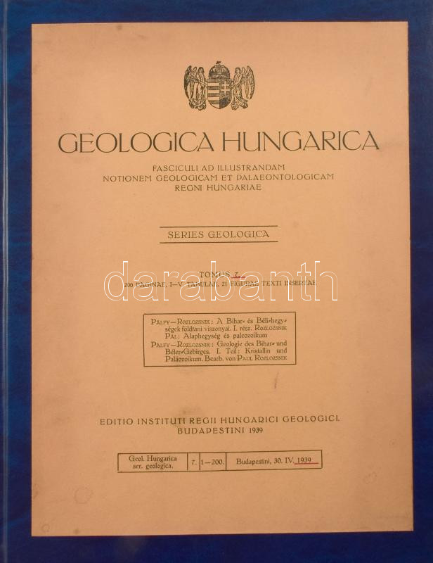 Geologica Hungarica 7. Bp., 1939., Institutum Regni Hungariae Geologicum [Magyar Kir. Földtani Intézet], (Stádium-ny.), 200 p.+ 3 (színes térkép, 2 táblázat) t. + V (1 fekete-fehér térkép, 4 fekete-fehér képtábla, az utóbbik előtt magyarázó táblákkal) t. Kisebb részben magyar, nagyobb részben német nyelven. Átkötött modern félműbőr-kötés, régi intézményi bélyegzésekkel, névbejegyzéssel, jó állapotban.