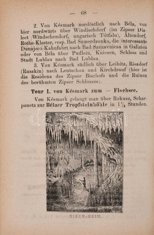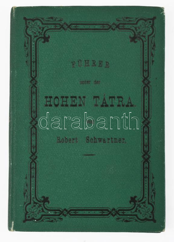 Robert Schwartner: Führer unter der Hohen Tátra. Késmárk, 1883, Szerzői kiadás, Sauter&Schmidt-ny., XVI+2+97 p. Két szövegközti illusztrációval, korabeli reklámokkal, német nyelven. Kiadói festett egészvászon-kötés, a borítón kis kopásnyomokkal, az elülső szennylap kijár, három lapon ceruzás aláhúzásokkal, ex libris bélyegzéssel és névbejegyzéssel, ezt leszámítva jó állapotban. Nagyon ritka!