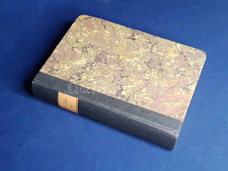XX. század első felében készült félvászon kötésben, márványmintás festésű lapszélekkel, a címfelirat a gerincen sárga címkén.