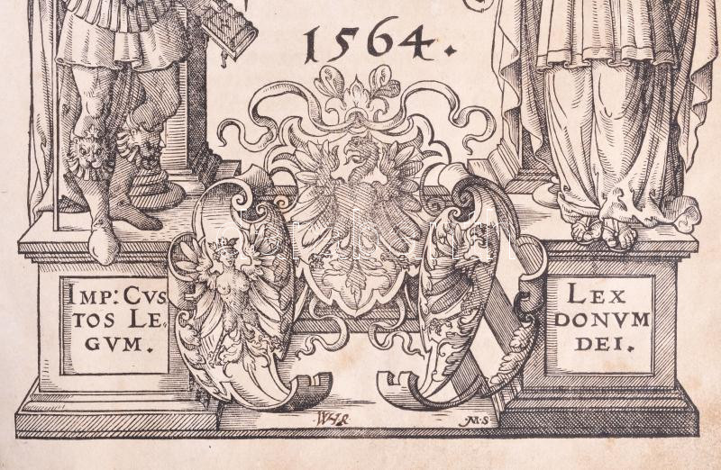 Eredeti XVI. századi egészbőr-kötésben, kötéstáblákon keretben: körben növényi ornamentikus díszítéssel, utána szintén körbe figurális díszítésekkel, alattuk feliratokkal, utánuk növénydíszes ornamentkában medalionokkal, bennük arcképekkel, végül szintén növényi ornamentikával, továbbá a borítón keretben "Reformation" és "1564" feliratokkal, kopott, foltos borítóval, a borítón karcolásokkal, és apró lyukakkal, a fém kapcsok hiányoznak, a hátsó táblán (a hiányzó kapcsok mentén), a gerinc felső részén, és a felső sarkokon sérülésekkel, a címlap felső sarkán hiánnyal, a legutolsó lap és a metszet (222-223. lev között) sérült, az elülső szennylapon kis sérüléssel, rajta több korszakból származó bejegyzésekkel, foltos lapokkal, a lapokon bejegyzésekkel, jegyzetekkel, (felthetőleg egy kéz munkái kb. a XVI. sz. végéről/XVII. sz. elejéről), a könyv végén egy kéz általi jegyzetekkel (feltehetőleg XVI. sz. vége/XVII. sz. eleje.) Modern védőtokban, belül bársony védőborítással.