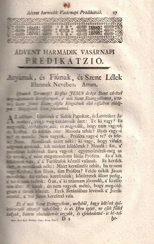 Padányi Biró Márton (1693-1762) veszprémi püspök, Veszprém megye örökös főispánja, szenvedélyes hitvitázó, aulikus főúr, mecénás, színes barokk egyéniség. Prédikációs kötete az év vasárnapjaira és ünnepnapjaira szánt szentbeszédeiből válogat. Kötetünk a teljes évet átfogó, ízes magyarsággal megfogalmazott ötkötetes szentbeszéd-gyűjtemény első, önmagában is megálló része, mely az adventi időszaktól a Vízkereszt utáni hatodik vasárnapig tartó évszakasz prédikációit tartalmazza.