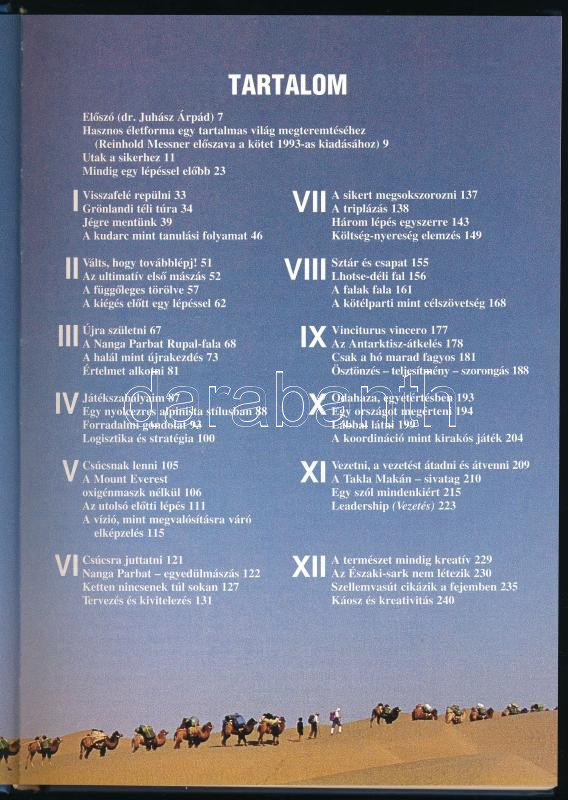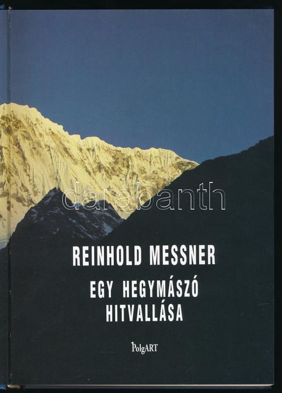 Messner, Reinhold: Egy hegymászó hitvallása. Ford., szerk., a hely- és névmutatót összeáll.: Nemeskürty Harriet. Juhász Árpád előszavával. [Bp.,. 2001.], PolgArt, 250+6 p. Gazdag képanyaggal illusztrált. Kiadói kartonált papírkötés.