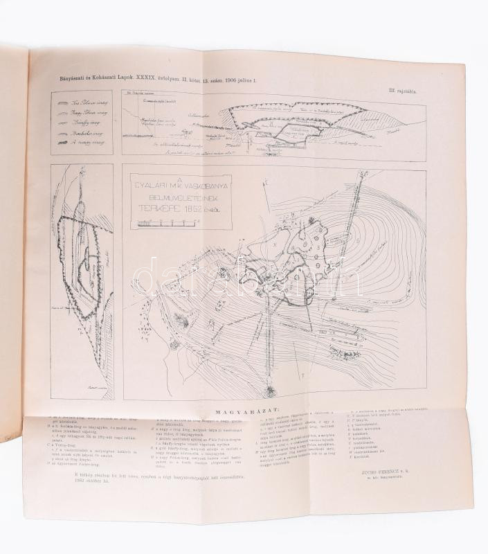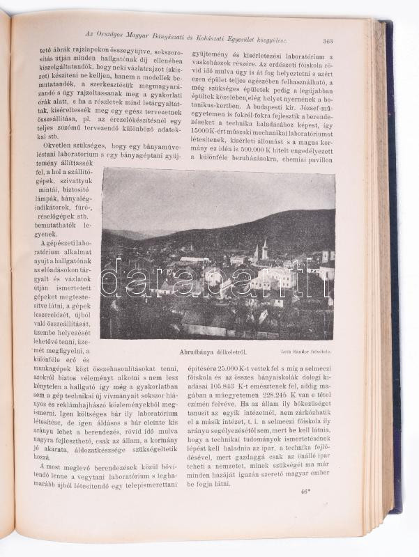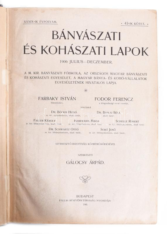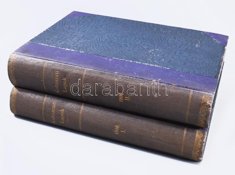 1906 Bányászati és Kohászati Lapok XXXIX. évfolyam (42. és 43. kötetek. ) A M. Kir. Bányászati Főiskola, az Országos Magyar Bányászati és Kohászati Egyesület, a Magyar Bánya- és Kohó-Vállalatok Egyesületének hivatalos lapja. Szerk.: Gálocsy Árpád. Bp., 1906., Pallas-ny., X+792 p.+2 (kihajtható táblák) t.; VIII+851 p.+VIII (6 kihajtható táblával) t+1 (kihajtható ábra) t. Gazdag fekete-fehér képanyaggal, képekkel, ábrákkal, térképekkel illusztrált. Átkötött félvászon-kötések, márványozott lapélekkel, kopott borítókkal, a gerinceken kis sérülésekkel, jó állapotban.