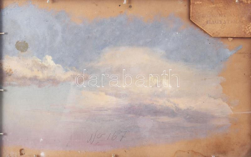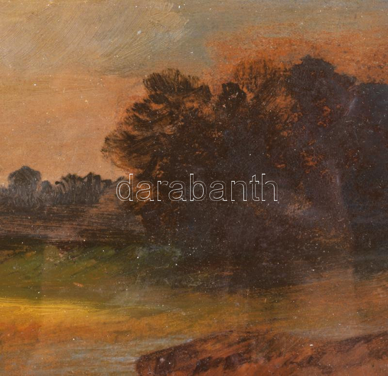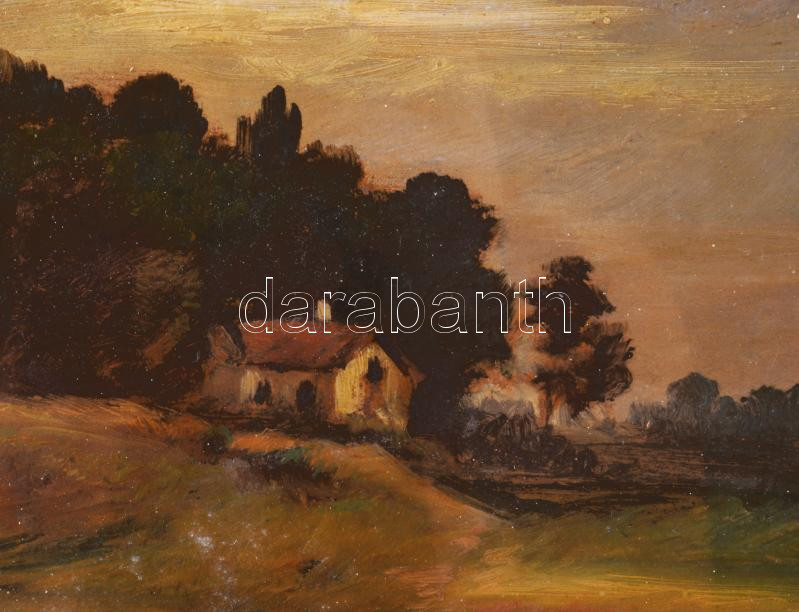 Brodszky Sándor (1819-1901): Táj. Olaj, papír. Jelzés nélkül, hátoldali karton hátlapon hagyatéki bélyegzővel és egy másik táj vázlattal. Dekoratív, üvegezett fakeretben. 19,5x28,5 cm