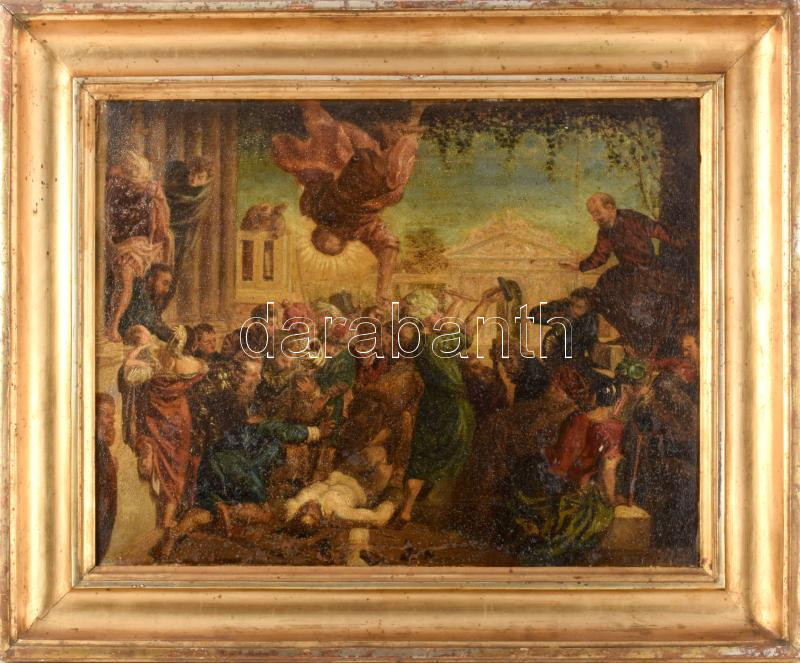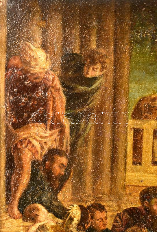 Beschreibung: Telepy Károly (1828-1906): Bibliai jelenet. Olaj, vászon. Jelezve jobbra lent. Javított. Dekoratív, kissé kopott fakeretben, 35,5×46 cm