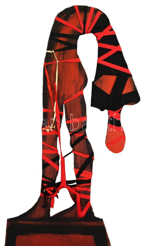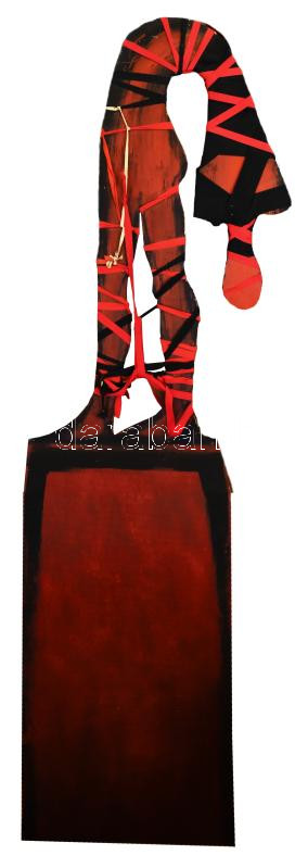 El Kazovszkij (1948-2008): Gúzsba kötött (cím nélkül). Olaj, applikáció, fa, jelzés nélkül. 200x67 cm. Proveniencia: korábban Gergely Iván közgazdász gyűjteményében. KIZÁRÓLAG SZEMÉLYES ÁTVÉTEL, NEM POSTÁZZUK! / oil and application on wood, unsigned. ONLY PERSONAL COLLECTION AT OUR OFFICE!