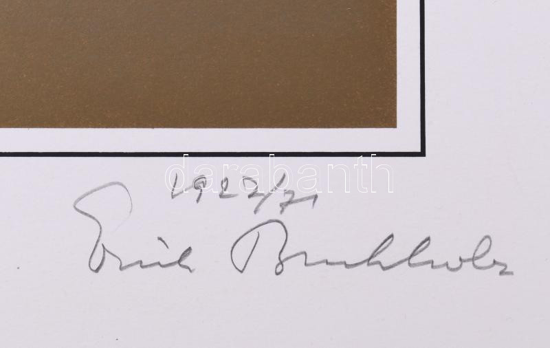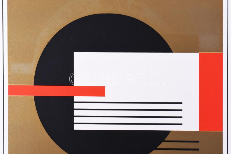 Beschreibung: Erich Buchholz (1891-1972): Konstruktivista kompozíció (cím nélkül), 1922-1971. Szitanyomat, papír. Jelzett. Számozott (73/75). 36x30 cm